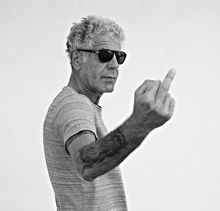 Anthony already knew exactly who he was when fame struck during his mid-forties. An accomplished chef and struggling author who had a breakthrough epiphany that maybe his so-called-life was interesting enough to document, dropped 2000’s Kitchen Confidential at age forty-four. The no-holds-barred memoir documented a pursuit of perfection in cuisine and personal destruction outside of it. The book quickly became a New York Times best seller and a rockstar was not born, but finally recognized. The tour ultimately led to television where he hosted A Cook’s Tour, No Reservations, The Layover and Parts Unknown, traveling and shooting 250 days out of the year for two decades. Due to his liberal use of profanity and sexual references during No Reservations, the network added viewer-discretion advisories to each episode. Bourdain once described the concept as, “I travel around the world, eat a lot of shit, and basically do whatever the fuck I want.”