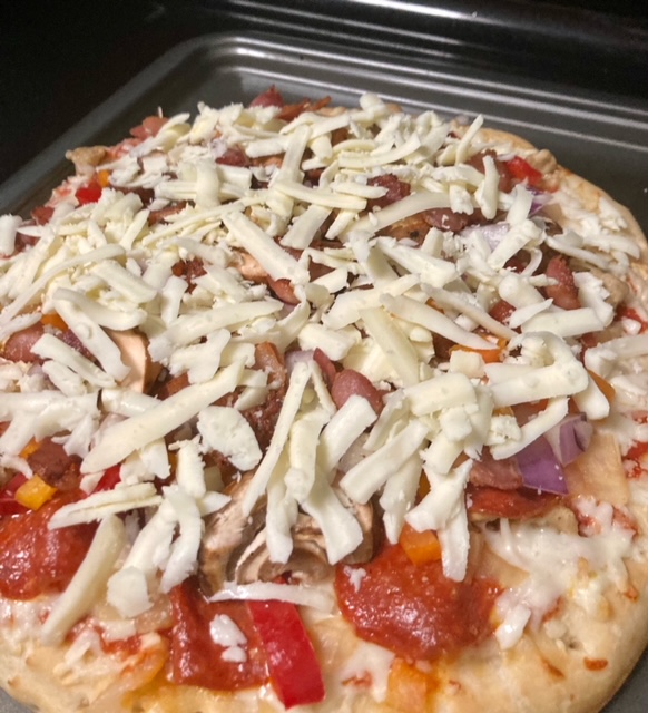 -Cook frozen pizza 75% of the time listed on box, then add toppings, cheese before cooking for the remainder or until cheese is golden brown. 5$ pizza becomes gourmet.
